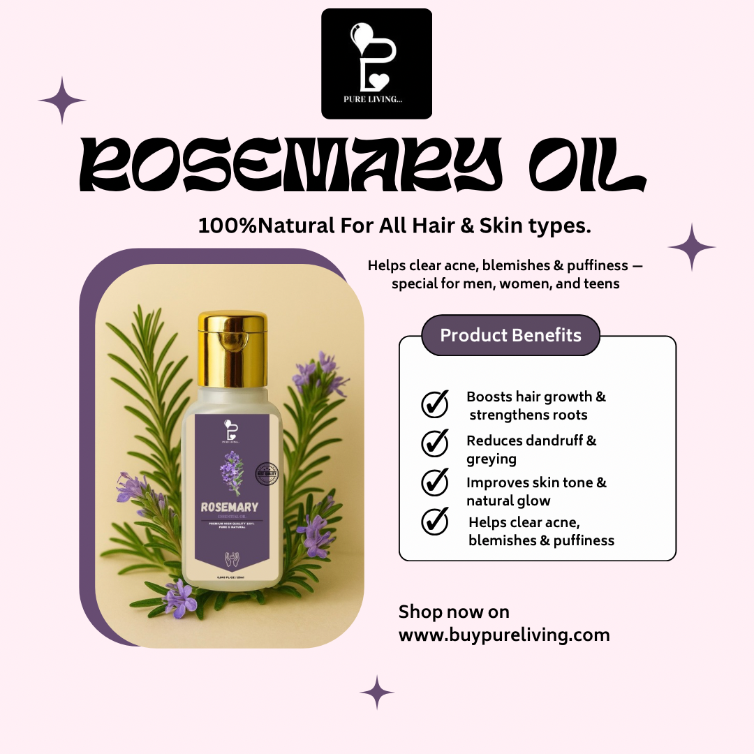 Pure Rosemary Essential Oil 100% Natural | Cold-Pressed | For Hair, Skin & Scalp Care-Pure Living.